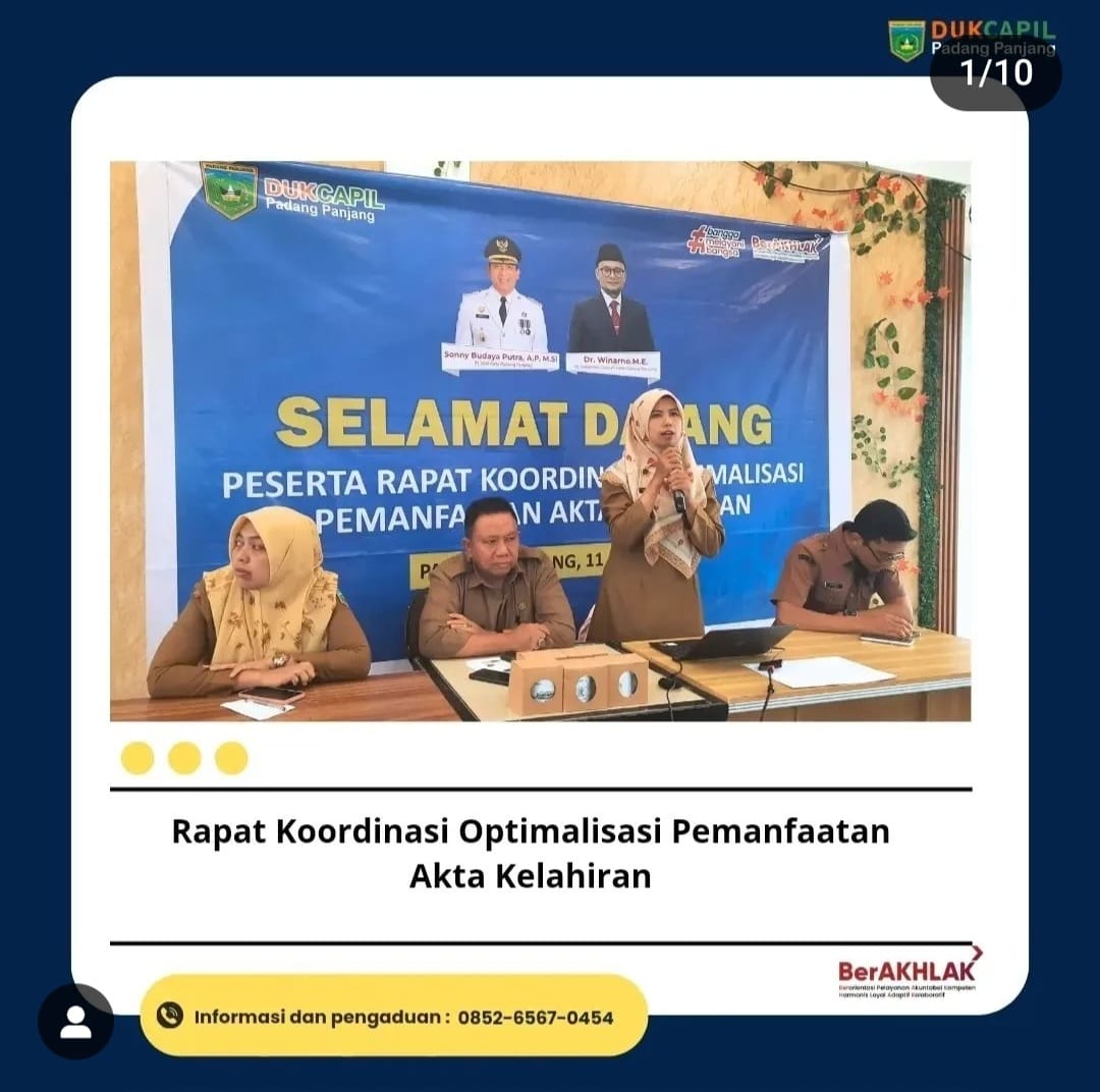 Dinas Kependudukan dan Pencatatan Sipil Kota Padang Panjang melaksanakan Rapat Koordinasi Optimal