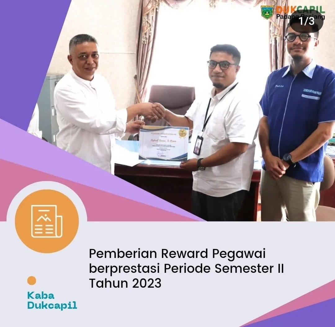 Dinas Kependudukan dan Pencatatan Sipil Kota Padang Panjang mengadakan Pemberian Reward kepada pegawai berprestasi di Lingkugan Dinas Dukcapil Periode Semester II Tahun 2023
