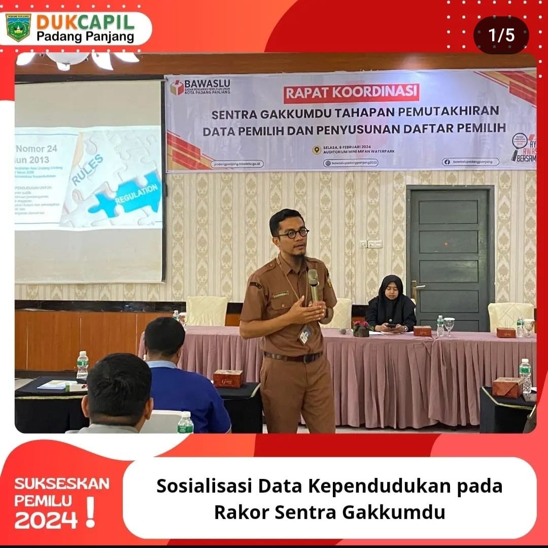 Sosialisasi Data Kependudukan pada Rakor Sentra Gakkumdu. Operator DISDUKCAPIL Selasa, 06-02-2024 Bertempat di Auditorium Mini Mifan Waterpark, Badan Pengawas Pemilu Kota Padang Panjang menggelar Read More