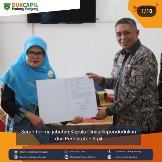 Pada Kamis (5/10) telah dilakukan serah terima jabatan Kepala Dinas Dukcapil dari Dra. Maini, MM