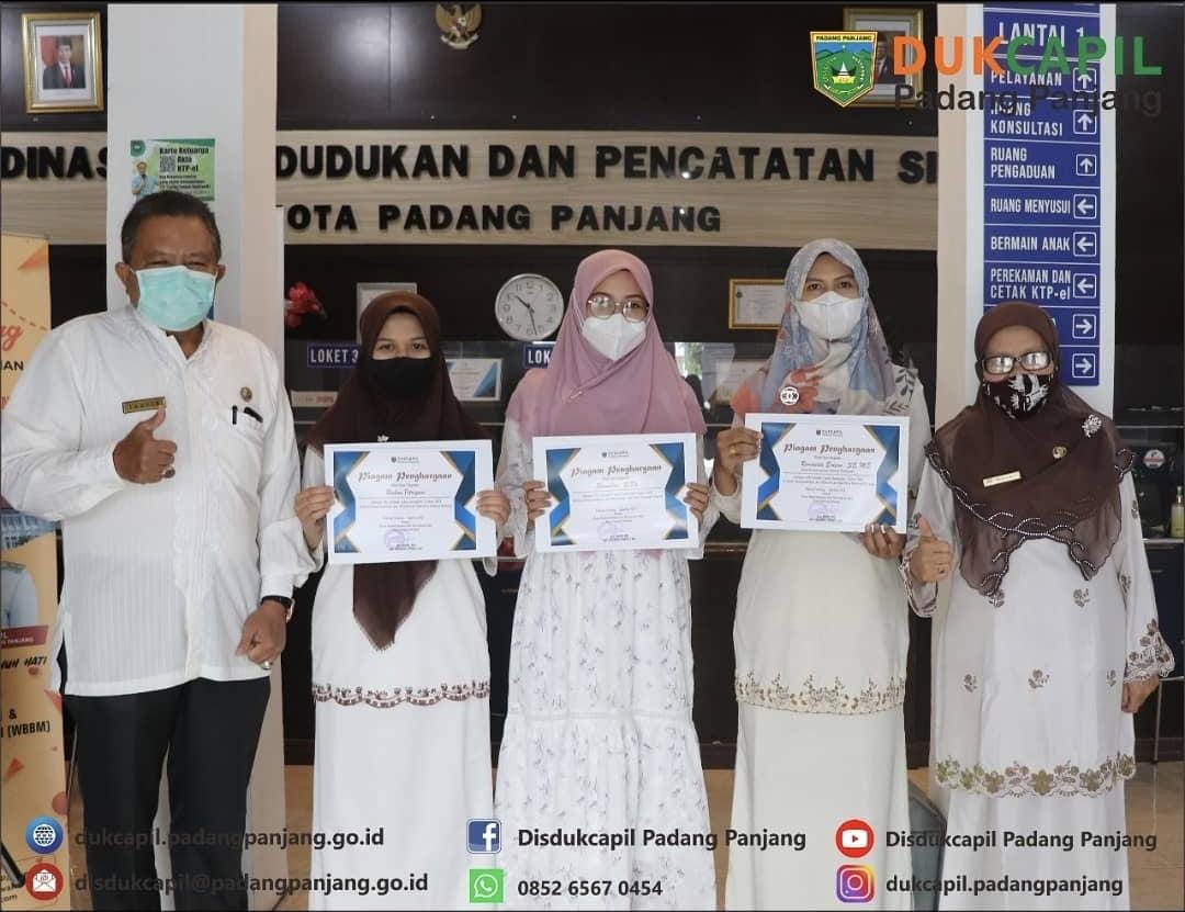 Dinas Dukcapil Kota Padang Panjang Berikan Penghargaan Kepada Enam Pegawai Terbaik Operator DISDUKCAPIL Sabtu, 07-08-2021 Jumat, 6 Agustus 2021, Dinas Dukcapil berikan Penghargaan kepada enam orang Pegawai Terbaik. Read More