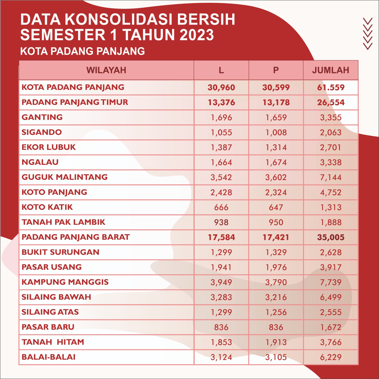 Kementerian Dalam Negeri melalui Direktorat Jenderal Kependudukan dan Pencatatan Sipil merilis Data Konsolidasi Bersih Kependudukan Semester 1 Tahun 2023. Ini merupakan Amanat dari Undang-undang Nomor 23 Tahun 2014 tentang Administrasi Kependudukan bahwa Data Kependudukan skala Nasional diterbitkan secara berkala per semester, berasal dari Data Kependudukan yang telah dikonsolidasikan dan dibersihkan oleh Kementerian yang bertanggung jawab dalam urusan pemerintahan dalam negeri.