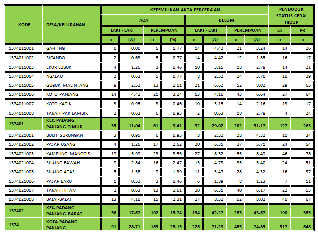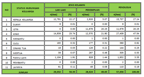 Kuantitas Penduduk Persebaran Penduduk Kelompok Umur Golongan Darah Pendidikan yang Ditamatkan Pekerjaan Agama Agama Status Perkawinan Jenis Kecatatan Kuantitas Keluarga Keanggotaan Keluarga Kepala Keluarga Pendidikan dan Pekerjaan Kepemilikan Dokumen Kartu Keluarga Kartu Tanda Penduduk (KTP el) Akta Kelahiran Akta Perkawinan Akta Perceraian