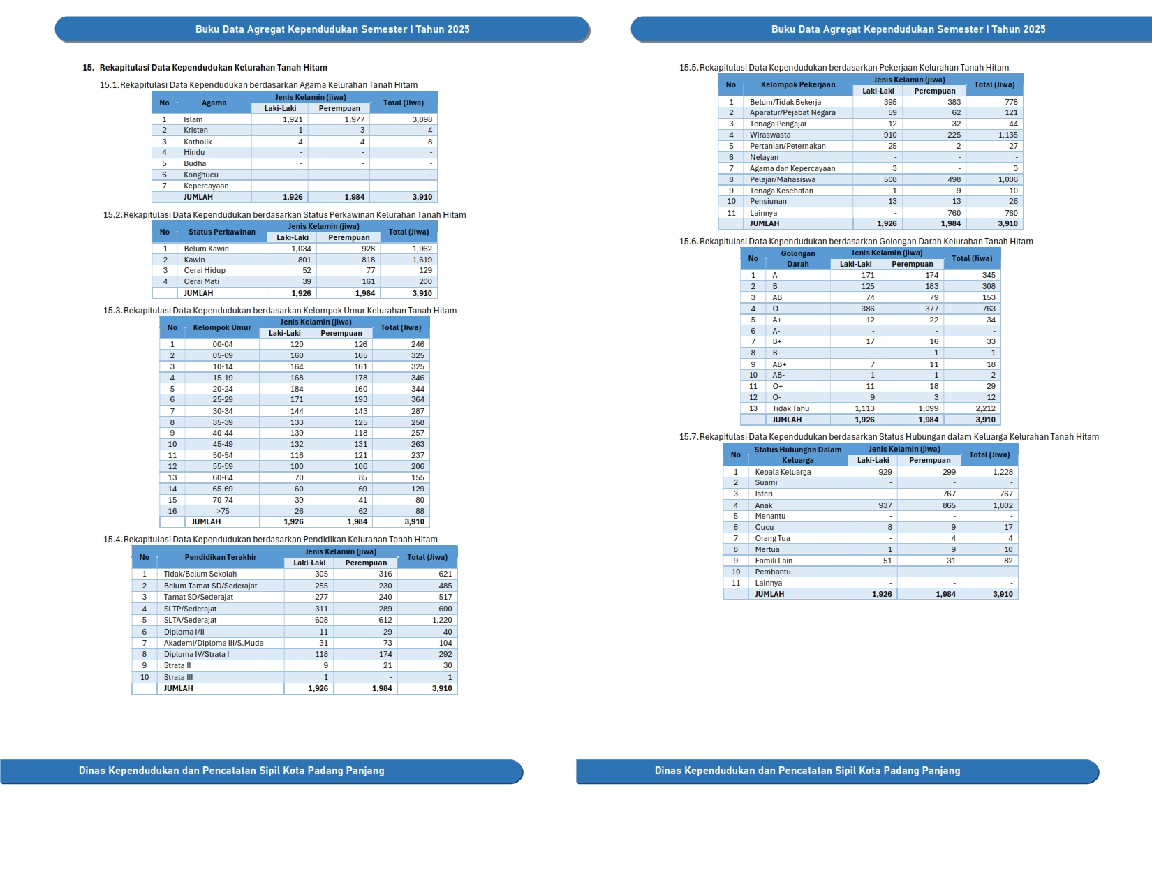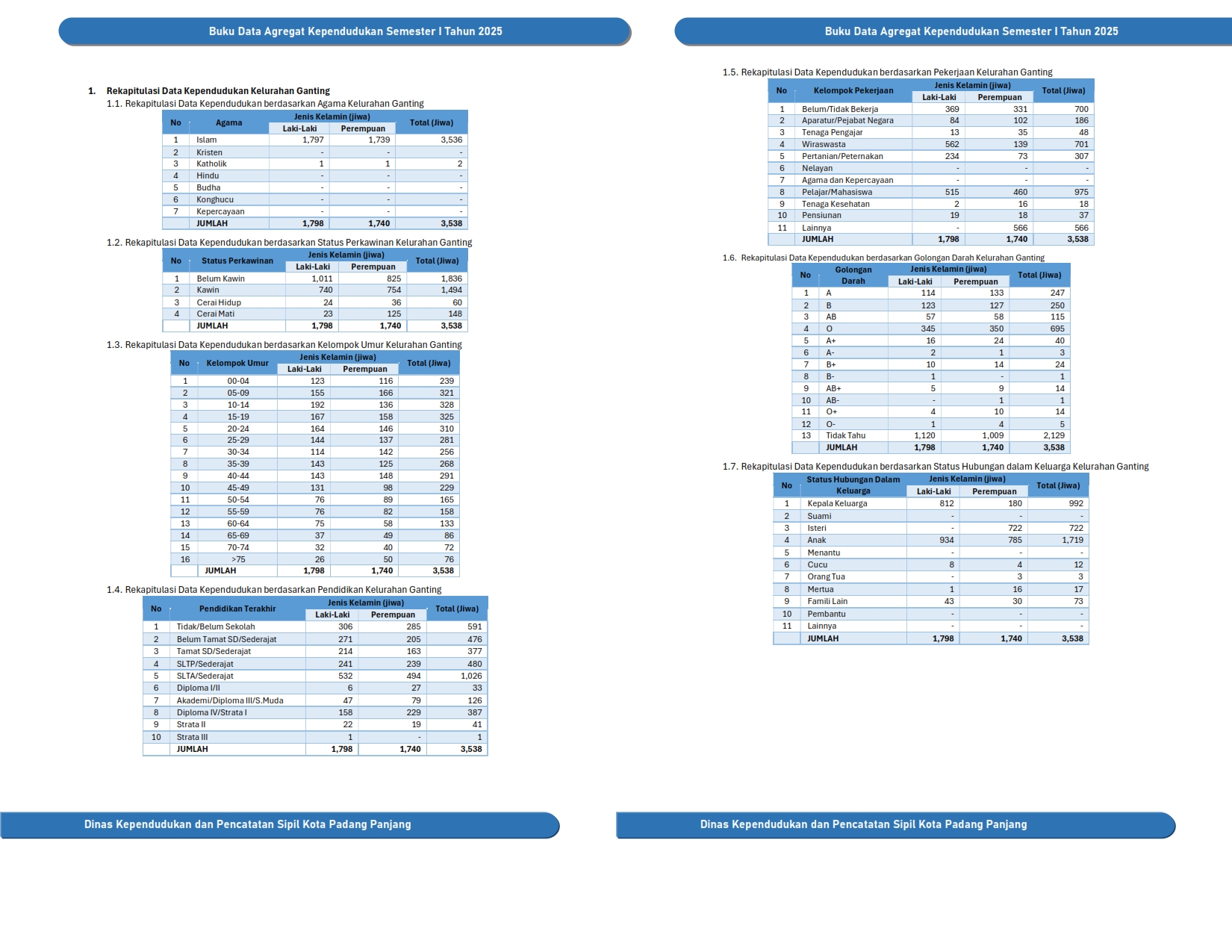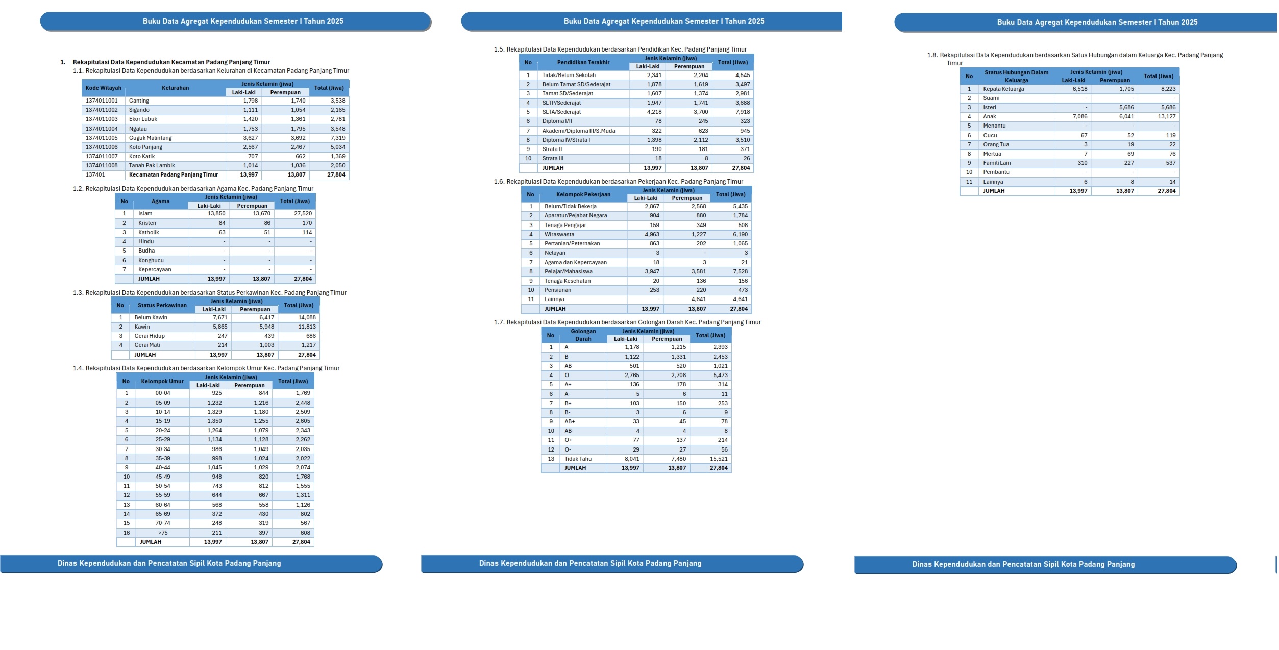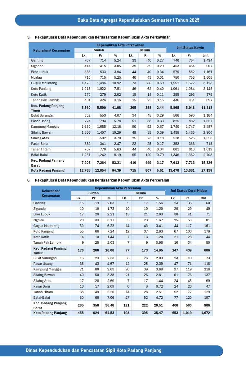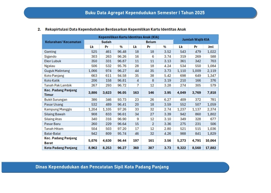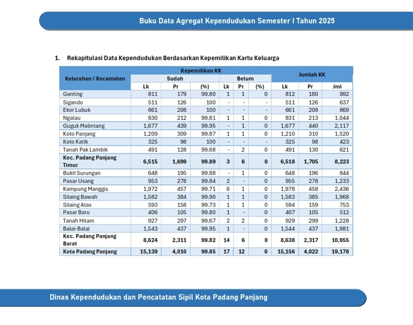 Kuantitas Penduduk Rekapitulasi Data Kependudukan Kota Padang Panjang Smt I Tahun 2025 Rekapitulasi Data Kependudukan Kota Padang Panjang Smt I Tahun 2025 Rekapitulasi Data Kependudukan Kota Padang Panjang Smt I Tahun 2025 Rekapitulasi Data Kependudukan Kecamatan Padang Panjang Timur Rekapitulasi Data Kependudukan Kecamatan Padang Panjang Barat Rekapitulasi Data Kependudukan Kelurahan Ganting Rekapitulasi Data Kependudukan Kelurahan Sigando Rekapitulasi Data Kependudukan Kelurahan Ekor Lubuk Rekapitulasi Data Kependudukan Kelurahan Ngalau Rekapitulasi Data Kependudukan Kelurahan Guguk Malintang Rekapitulasi Data Kependudukan Kelurahan Koto Panjang Rekapitulasi Data Kependudukan Kelurahan Koto Katik Rekapitulasi Data Kependudukan Kelurahan Tanah Pak Lambik Rekapitulasi Data Kependudukan Kelurahan Bukit Surungan Rekapitulasi Data Kependudukan Kelurahan Pasar Usang Rekapitulasi Data Kependudukan Kelurahan Kampung Manggis Rekapitulasi Data Kependudukan Kelurahan Silaing Bawah Rekapitulasi Data Kependudukan Kelurahan Silaing Atas Rekapitulasi Data Kependudukan Kelurahan Pasar Baru Rekapitulasi Data Kependudukan Kelurahan Tanah Hitam Rekapitulasi Data Kependudukan Kelurahan Balai Balai Rekapitulasi Data Kependudukan Berdasarkan RT Kuantitas Keluarga Kepemilikan Dokumen Rekapitulasi Data Kependudukan Berdasarkan Kepemilikan Kartu Keluarga Rekapitulasi Data Kependudukan Berdasarkan Kepemilikan Kartu Identitas Anak Rekapitulasi Data Kependudukan Berdasarkan Kepemilikan Akta Perkawinan dan Perceraian Rekapitulasi Data Kependudukan Berdasarkan Kepemilikan KTP Elektronik Rekapitulasi Data Kependudukan Berdasarkan Kepemilikan Akta Kelahiran