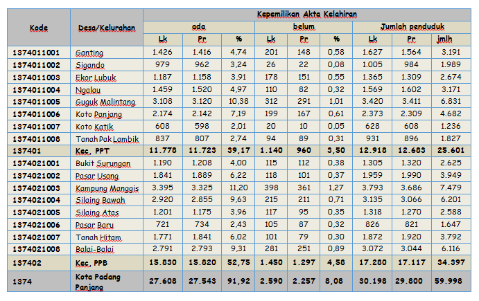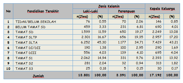 Kuantitas Penduduk Persebaran Penduduk Kelompok Umur Golongan Darah Pendidikan yang Ditamatkan Pekerjaan Agama Status Perkawinan Jenis Kecacatan Kuantitas Keluarga Keanggotaan Keluarga Kepala Keluarga Pendidikan dan Pekerjaan Kepemilikan Dokumen Kartu Keluarga Kartu Tanda Penduduk (KTP el) Akta Kelahiran Akta Perkawinan Akta Perceraian Kartu Identitas Anak (KIA)
