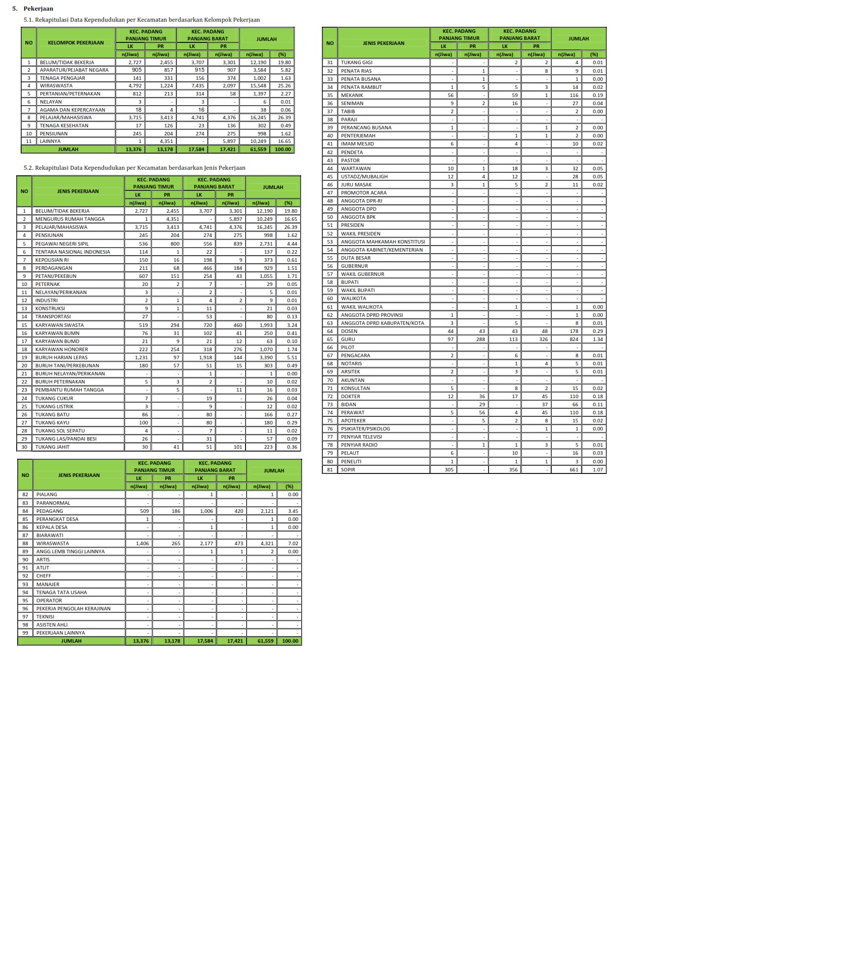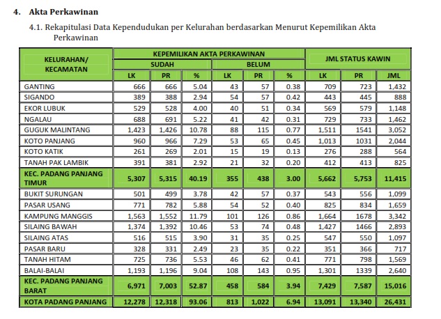 Kuantitas Penduduk Persebaran Penduduk Kelompok Umur Golongan Darah Pendidikan Pekerjaan Agama Status Perkawinan Disabilitas Kuantitas Keluarga Kepemilikan Dokumen Kartu Keluarga Kartu Tanda Penduduk Akte kelahiran Akte Perkawinan Akte Perceraian Kartu Identitas Anak