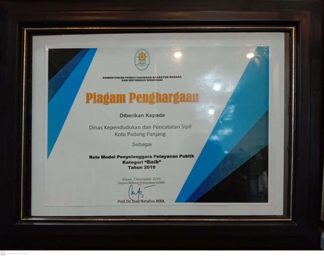 Role Model Penyelenggara Pelayanan ublik Kategori Baik Tahun 2019 dari Kementerian Pendayagunaan Aparatur Negara dan Reformasi Birokrasi