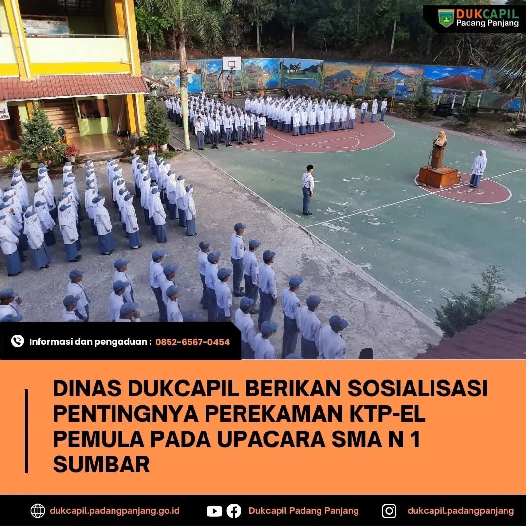 Dinas Dukcapil berikan sosialisasi Pentingnya Perekaman KTP-el pemula pada Upacara SMA N 1 SUMBAR.